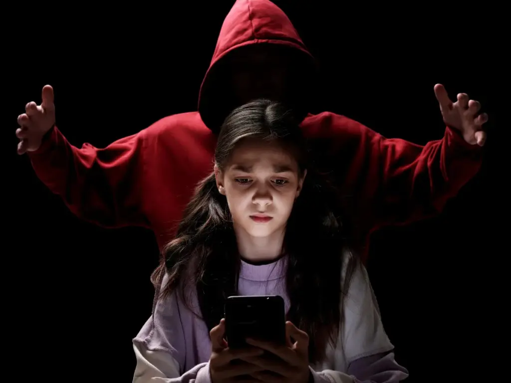 被跟蹤騷擾怎麼辦情境圖,呈現受害者面對跟蹤與訊息騷擾的不安